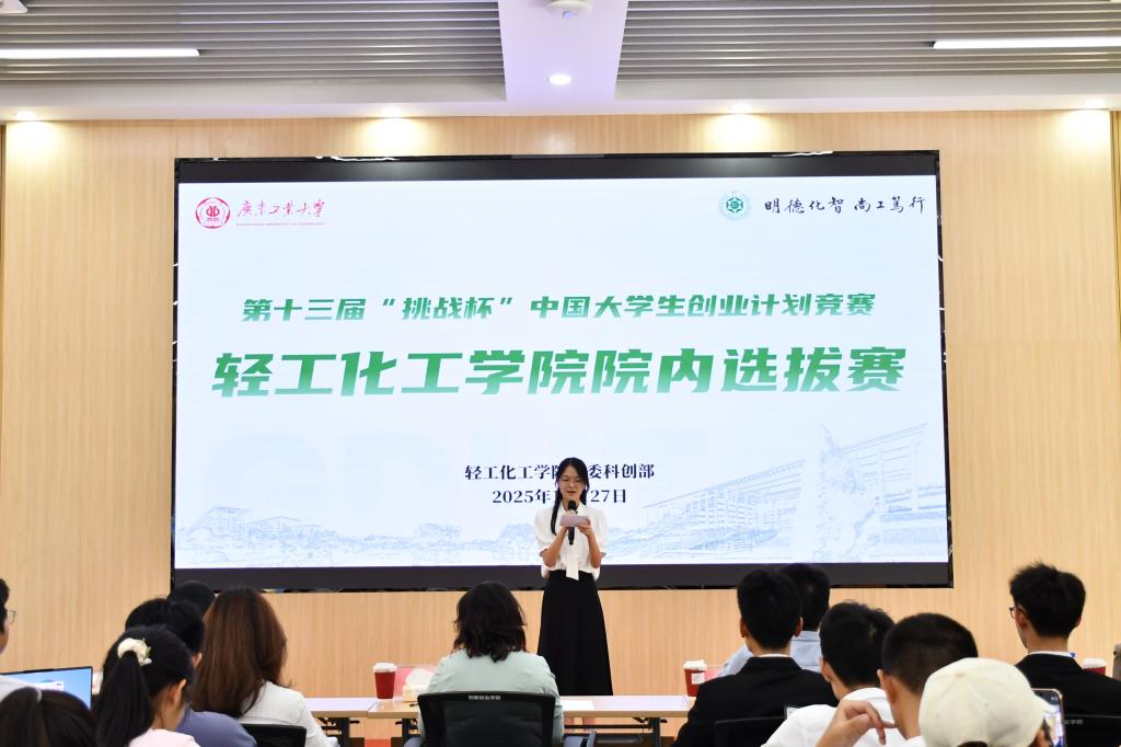 “挑战杯”中国大学生创业计划竞赛是由共青团中央、中国科协、教育部、全国学联共同主办的全国性创新创业赛事,具有鲜明的导向性、示范性与群众性。该赛事已成为激发青年创新潜能、锤炼创业能力、展示育人成果的重要平台。近期,轻工化工学院围绕第十三届“挑战杯”大学生创业计划竞赛,组织开展了赛事宣讲会与院内选拔赛。