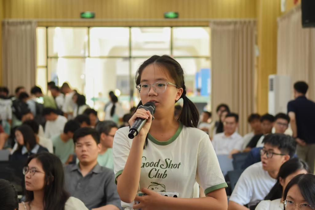在互动交流环节,同学们踊跃提问,围绕“大一学生如何加入团队”“参赛需具备哪些能力与素养”等问题,与嘉宾展开了热烈交流。吴静婷老师与李柱荣博士耐心解答,帮助同学们进一步明晰参赛路径与努力方向。与会同学纷纷表示,通过此次宣讲会,对“挑战杯”赛事有了更全面、深入的认识,明确了“可以做什么、应该怎么做、如何做得更好”,今后将积极把握各类创新实践机会,拓展视野、提升自我,为个人成长与发展夯实基础。