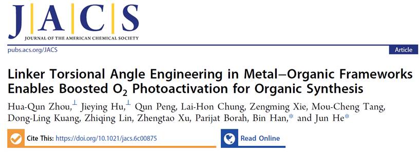 广东工业大学为论文第一完成单位,轻工化工学院研究生周华群和胡洁颖作为第一作者,何军和韩彬为通讯作者。论文链接DOI:10.1021/jacs.6c00875