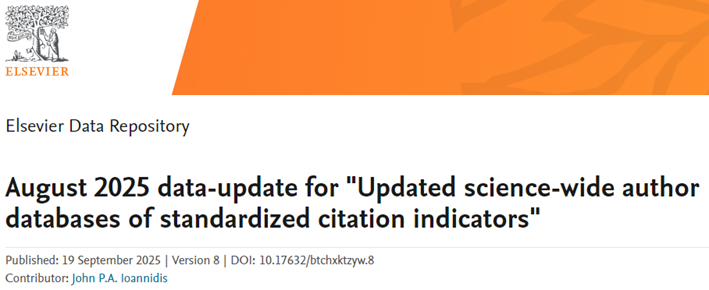 该榜单以Scopus数据库为依据,基于多种综合指标(如被引用次数、H指数、HM因子等6种指标),从22个领域和174个细分领域的1025万多名科学家中遴选出世界排名约前2%的科学家,分为“终身科学影响力榜单”(关注学者整个学术生涯的综合影响表现)和“年度科学影响力榜单”(聚焦学者上一年度学术成就)。榜单来源:https://elsevier.digitalcommonsdata.com/datasets/btchxktzyw/8
