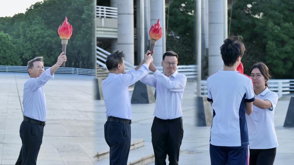 随后进行的“青春火炬接力”是精神与使命的生动对话。火炬由学院离退休教授梁亮老师起始,承载着历史的厚重与老一辈广工人艰苦奋斗的薪火;经心理健康教育中心罗嘉文主任与学院“2+3”辅导员黄雅琳传递,注入关怀与陪伴的温度;最终,郑重交到学生代表手中,由六位学生代表接续,点燃了六种截然不同却又相映生辉的青春火焰。