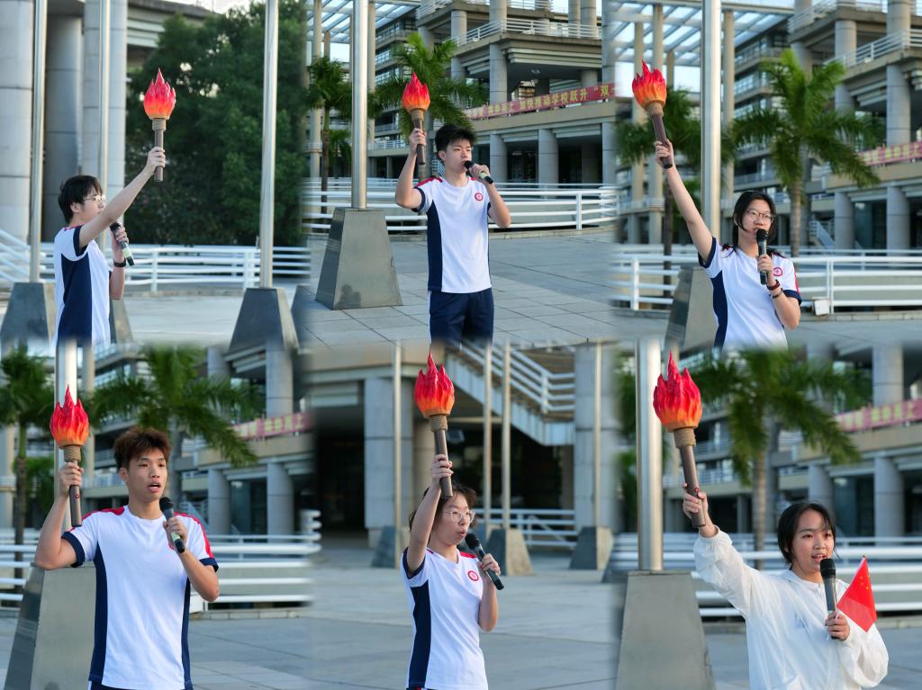 这六束火焰,共同熔铸成新时代青年的精神内核:党员代表黄健伟高擎“信仰与担当”之火,誓言铿锵;新入团代表陈泽纯跃动着“青春与希望”之火,神采飞扬;国奖获得者李冠炜守护着“探索与智慧”之火,沉静深邃;优秀运动员周杰明燃起“速度与激情”之火,动感十足;优秀志愿者李嘉丽传递着“温暖与奉献”之火,柔情满怀;最终,2025级新生代表侯礽霖汇聚所有光芒,将“传承与未来”之火高高举起,宣告着青春的誓言。