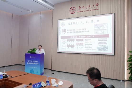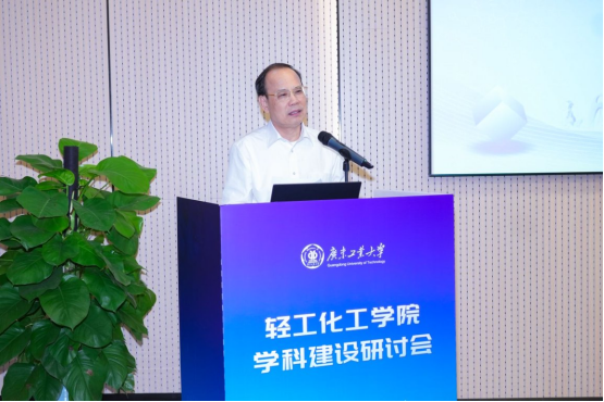 余林以“大、实、特、快”四个字概括了学校的发展现状,并从学科基础、发展布局、建设成效和未来规划四个方面作了系统阐述。他指出,轻工化工学院紧紧依托广东省“石化”和“生物质”两大资源优势,聚焦石化源头绿色替代、过程清洁生产以及中下游产品高值化利用等关键领域,逐步形成了精细化工、高分子材料和新能源化工三大特色方向。展望未来,学校将通过加强领军人才引进与培养、推动学科交叉创新、深化产教融合与科教协同、拓展国际合作交流等举措,进一步加快学科建设步伐,促进多学科高质量协同发展。