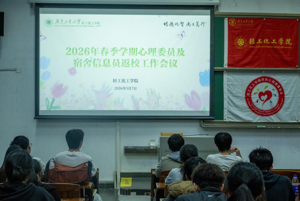 为了强调心理健康教育的重要性,帮助心理委员在新学期返校后更好地开展工作,营造良好心理健康教育氛围,轻工化工学院于3月7日晚在教三104召开2026年春季新学期心理委员及宿舍信息员返校工作会议。学校心理健康教育与咨询中心老师吴洁、学院心理健康工作指导老师冯浩宸及全体心理委员、宿舍信息员参加本次会议。